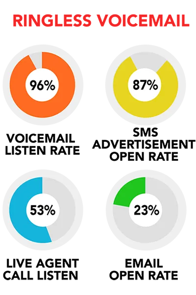 Insert a Ringless Voicemail (RVM Drop) into a mobile & landline phone without making a call. Ringless Voicemail don’t call cellphones; they are dropped on the backend. Ringless Voicemail Drops increase your response rate the responsible way.